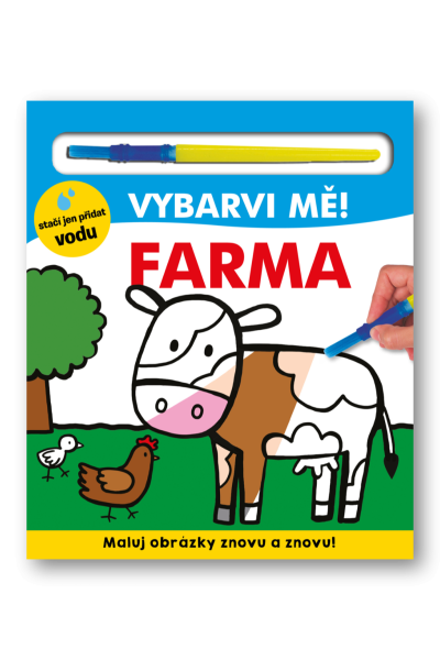 Knižka s pevnými stránkami je plná obrázkov z prostredia farmy, ktoré sú čiastočne farebné. Biele časti sa dajú veľmi ľahko vyfarbiť - stačí namočiť štetec, ktorý je súčasťou knihy, do vody a farba sa ako zázrakom na bielom podklade objaví. To ale nie je všetko! Vymaľovaný obrázok ako kúzlom zmizne, a tak ho dieťa môže vymaľovávať stále dookola. Skontrujte, či dieťa drží štetec správne. S touto knižkou si bude precvičovať jemné motorické schopnosti a koordináciu oka a ruky.