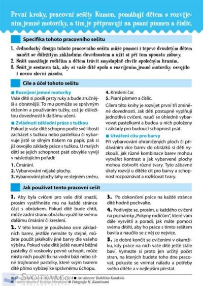 Vyfarbovanie - činnosť, ktorá deti od najútlejšieho veku baví a priťahuje. V tomto zošite dostanú dostatok priestoru, zabavia sa a zlepšia svoje motorické schopnosti. Vaše dieťa si posilní prsty ruky a bude zručnejšie a obratnejšie. To mu pomôže so správnym držaním a používaním ceruzky, čo je dôležitou zručnosťou na ďalšie učenie. Ako deti postupne vypĺňajú jednotlivé cvičenia, naučia sa úhľadne vyfarbovať pastelkami a budú u nich položené aj základy pre budúcu schopnosť písať. Zábavné úlohy rozvíja u dieťaťa cit pre farby a schopnosť rozpoznávať a rozlišovať tvary. Zošit má jednoduchý dizajn, ktorý zaujme aj dvojročné deti, a je zostavený tak, aby si vaše dieťa spolu s rozvíjaním jemnej motoriky osvojilo aj novú slovnú zásobu.