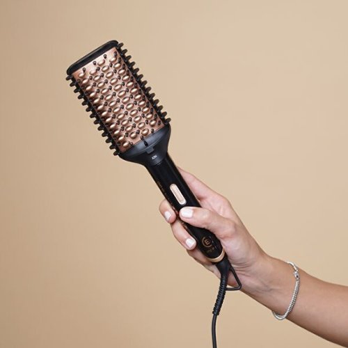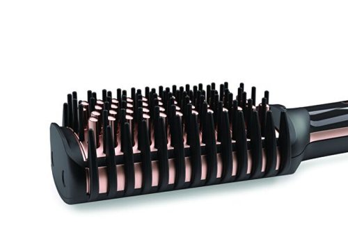 Vyhladzovacia kefa na vlasy pre ľahký styling bez krepatých vlasov. Prirodzený rovný efekt: vďaka širokému vyhrievanému povrchu v kombinácii s keramickými štetinami, plastovými štetinami a bočnými hrebeňmi dobre kĺže po vlasoch, aby vyzerali prirodzene rovné, každý deň, dokonca aj na kučeravých alebo vlnitých vlasoch. Vyhrievané a zaoblené vonkajšie okraje kefy vám umožnia upraviť vaše končeky dovnútra alebo von.