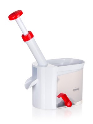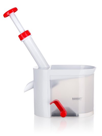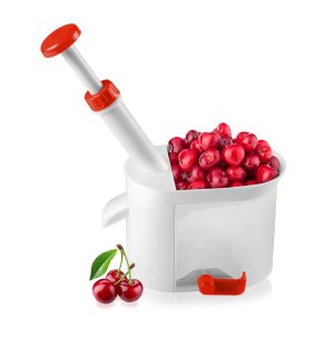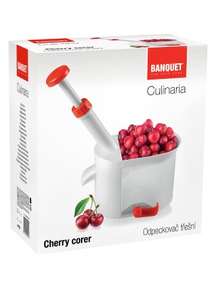 Odkôstkovač čerešní CULINARIA Red má celkovú výšku 26 cm, rozmer základne 15,5 x 9,5 cm. Výrobok je v bielej farbe s červenými prvkami a má gumové prísavky na zaistenie stability pri práci.