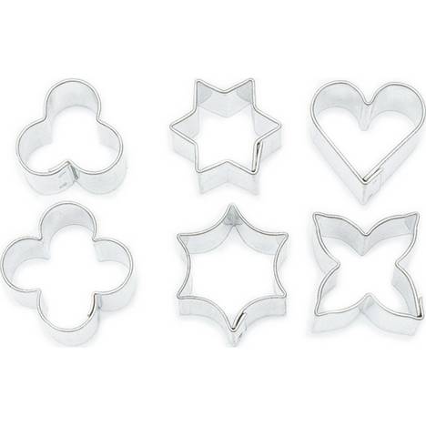 Šesť vykrajovacích rámčekov rôznych tvarov umožní vytvárať dokonale symetrické ak zdobeniu vhodné motívy, ktoré možno použiť aj samostatne ako malé zákusky či sladkosti, podľa použitého cesta. Vhodné aj na marcipánové ozdoby.