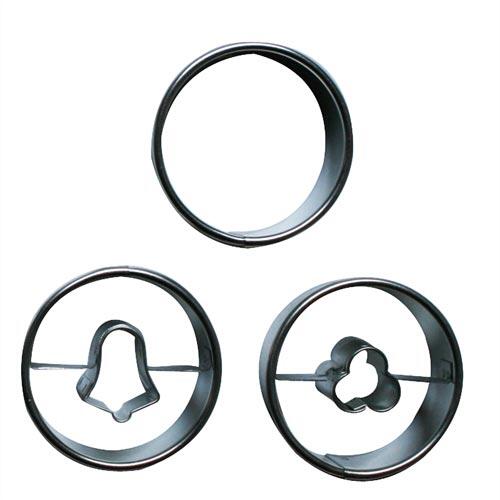 Vykrajovače v tvare hladkých koliesok so stredmi (zvonček a trojlístok).