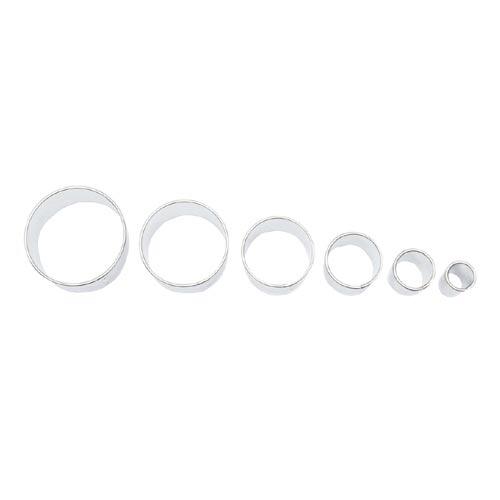 Súprava šiestich kusov rajčiakov v tvare hladkých koliesok rôznych priemerov.