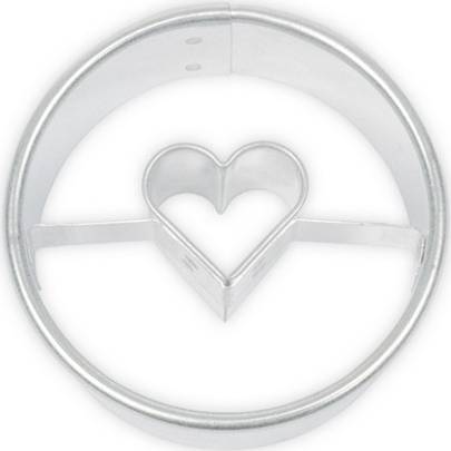 Vykrajovač na pečivo v tvare kolieska priemerom 4 cm a srdiečkom uprostred.
