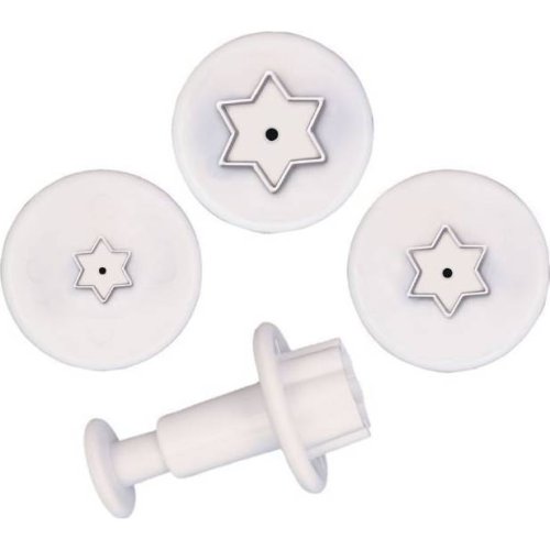 Súprava 3 ks plastových vykrajovačov rôznych rozmerov v tvare hviezdy. Súčasťou sady je plastový piest.