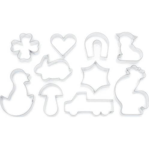 Desať jednoduchých populárnych tvarov, ktoré sú vytvorené najmä pre menšie deti, ktoré sa pri ich konzumácii zároveň učia ich významu, pri vytváraní môžu vďaka bezpečnému prevedeniu a zaoblenému hornému okraju vykrajovačiek tiež pomáhať.