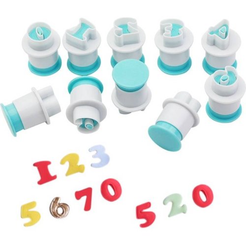 Vykrajovače s piestom predstavujú kompletný číselný rad. Vytvoriť tak môžete ľubovoľné číslice z marcipánu alebo cukrovej pasty.