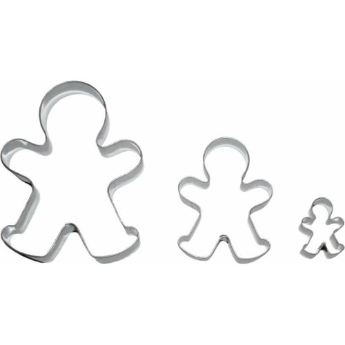 Súprava troch vykrajovačov v tvare panáčikov z pocínovaného plechu.