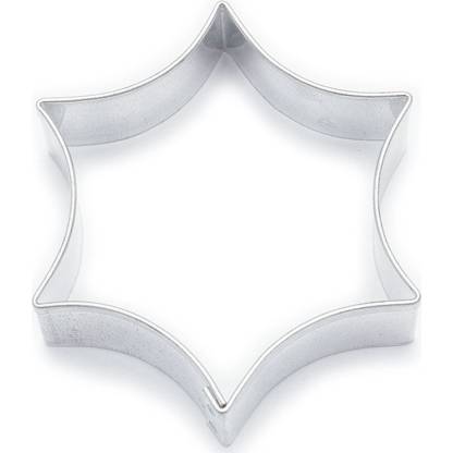 Vykrajovač na pečivo v tvare oblej hviezdy s rozmermi 4,8 x 5,5 centimetra.