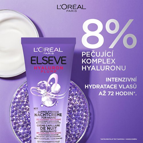 Nočný vyplňujúci krém obsahuje 8% ošetrujúceho hyalurónového komplexu na intenzívnu hydratáciu vašich vlasov až na 72 hodín. Unikátne ľahké zloženie v priebehu noci uzatvára vlasové kutikuly a tým vlasy hydratuje a zabraňuje ich krepateniu. Ráno budú vaše vlasy hydratované o 85%, plnšie a ľahšie rozčesateľné.