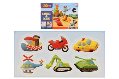 Balenie obsahuje sadru, plastový kelímok, plastovú misku, plastovú formu so 6 rôznymi motívmi, 8 farbičiek na vyfarbenie, 2 štetčeky, plastovú lyžičku a drevenú špachtličku. Rozmery balenia cca 27 x 19 x 5 cm. Vek 6+