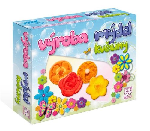 Kreatívna sada na výrobu mydla. Balenie obsahuje: blok čistého mydlového základu, blok žltého mydlového základu, blok modrého mydlového základu, blok červeného mydlového základu, formičku, tyčinku na premiešavanie a kadičku na rozpustenie a rozmiešanie. Možno použiť v mikrovlnnej rúre. Z jednej sady je možné vyrobiť 8 - 10 mydiel. Vhodné od 5 rokov.