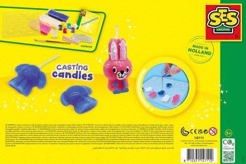 Vytvorte si vlastné veselé sviečky. Rozohrejte a nalejte sviečkový vosk do odlievacích formičiek v tvare zvieratiek a ľahko si vyrobte originálne sviečky, ktoré si dozdobíte podľa vlastnej fantázie pomocou priložených farbičiek a trblietok. Bloky vosku v červenej, bielej a modrej farbe môžete po rozpustení namiešať do ďalších odtieňov a vytvárať vo formičkách rôzne farebné kombinácie. Obsah sady: 3 farebné vosky, knôt, odmerný kelímok, odlievacia forma, 6 farebných lakov, tubička ružových trblietok, štetec a návod na použitie. Rozmery balenia: 20 x 30 x 4 cm. Vek: 5+