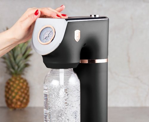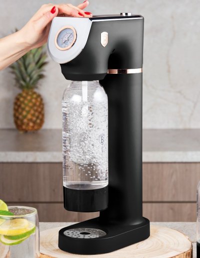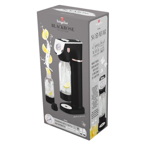 Výrobník sódy Sodabar je dizajnovo dokonalý domáci prístroj na výrobu perlivých nápojov. Tento kompaktný a štýlový prístroj je vyrobený z nerezovej ocele a polypropylénu a je navrhnutý tak, aby sa hodil do každej kuchyne. S rozmermi 43,5 cm x 22 cm x 12 cm sa zmestí na akúkoľvek kuchynskú linku.<BR><BR>Výrobník sódy Sodabar prichádza s dvoma fľašami s objemom 1,0 L a 0,5 L. Prístroj je kompatibilný so štandardnými skrutkovacími CO2 bombičkami akejkoľvek značky (nie sú súčasťou balenia).<BR><BR>Vďaka vstavanému barometru môžete ľahko nastaviť úroveň perlivosti od veľmi jemnej až po silne perlivú sódu. A to všetko stlačením jediného tlačidla!<BR><BR>Výrobník sódy Sodabar je ekologické riešenie, ktoré pomáha znižovať produkciu plastového odpadu. Navyše nepotrebuje elektrinu ani batérie, takže je ideálny pre použitie úplne kdekoľvek.<BR><BR>Vlastnosti <BR>- Materiál: nerezová oceľ, PP <BR>- Veľkosť: 43,5 x 22 x 12 cm <BR>- 2 kusy vymeniteľnej fľaše s viečkom: 1,0 la 0,5 l <BR>- Univerzálna, štandardná veľkosť bombičiek CO2 (nie sú súčasťou dodávky) <BR>- Barometer - úrovne od super jemnej po silnú perlivú limonádu<BR>- Čerstvá sódová voda jednoduchým stlačením tlačidla <BR>- Nie je nutná elektrina ani batéria <BR>- Tlačidlo pre prívod vzduchu <BR>- Dvojité bezpečnostné uvoľnenie tlaku udržuje proces bezpečný a čistý <BR>- Ekologické riešenie - pomáha znižovať množstvo plastového odpadu<BR>- Farba : matná čierna-ružové zlato<BR>- BLACK ROSE Collection<BR>- značka: Berlinger Haus