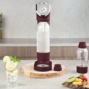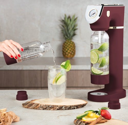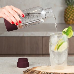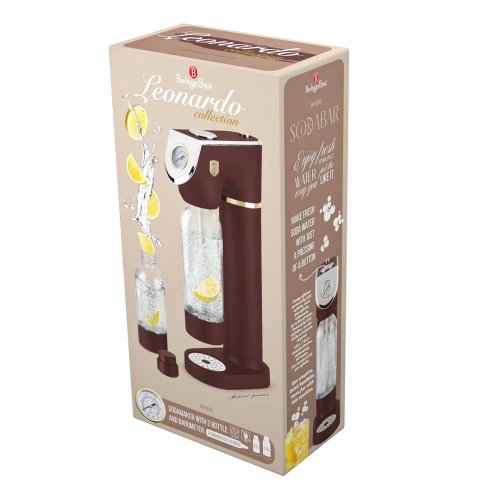 Výrobník sódy Sodabar prichádza s dvoma fľašami s objemom 1,0 L a 0,5 L. Prístroj je kompatibilný so štandardnými skrutkovacími CO2 bombičkami akejkoľvek značky (nie sú súčasťou balenia).