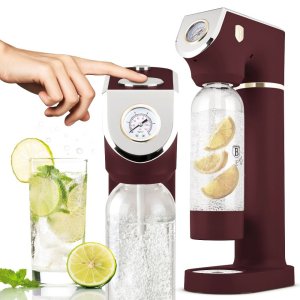 Výrobník sódy, barometer pre jednoduché nastavenie úrovne perlivosti, použitie bez elektriny a batérií, kompatibilita so štandardnými skrutkovacími CO2 bombičkami, dvojité bezpečnostné uvoľnenie tlaku, kompaktný …