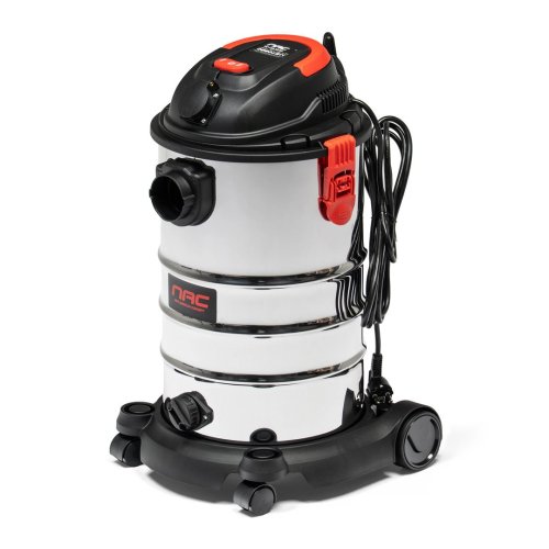 Priemyselný vysávač NAC VC-120-30-RB s výkonom 1200 W a nádobou s objemom 30 l zvládne náročné upratovanie v dielni, garáži aj okolo domu. Umožňuje vysávanie na sucho aj mokro, takže si poradí s prachom, nečistotami aj rozliatymi kvapalinami.
