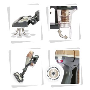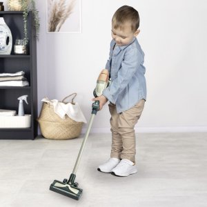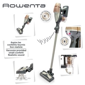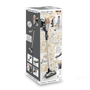 Moderný tyčový vysávač pre deti v originálnom designe vysávača Rowenta Air Force 360 °. Stlačením tlačidla je možné vysávač zapnúť, rozsvieti sa LED kontrolka a budete počuť skutočný zvuk sania. Zároveň sa aktivuje funkcia mierneho prisávania a malé guličky vo vnútri zbernej nádoby víria dookola. Nádobu je možné tiež otvoriť a vyprázdniť, rovnako ako skutočnú. Upratovací prístroj Rowenta bez dlhej rukoväte môžu deti používať aj ako ručný vysávač. Rozmery produktu (DxŠxV): 8 x 16 x 80 cm.