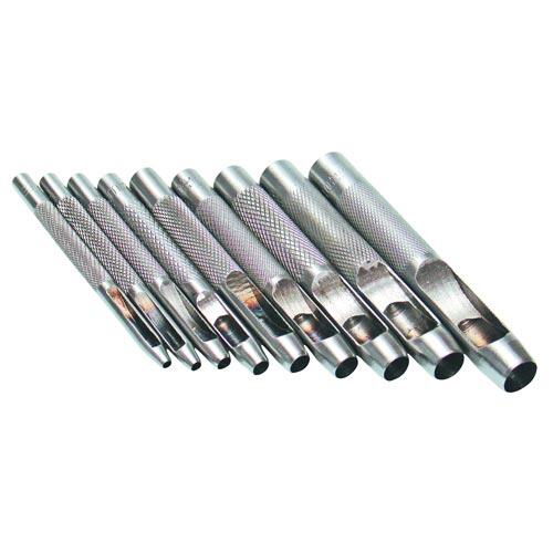 - oceľové dierovače na koži - dierovače sú opatrené bočným vyhadzovaním odpadu - sada 9ks, priemery dierovačov 2,5mm / 3mm / 4mm / 5mm / 6mm / 7mm / 8mm / 9mm / 10mm - EAN 85908040260