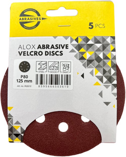 Brúsne výseky so suchým zipsom určené pre excentrické, vibračné a uhlové brúsky. Prémiové korundové zrno s polootvorenou štruktúrou posypu, vhodné na brúsenie dreva, lakov, tmelov a všetkých druhov kovov. Tuhý podkladový E-papier (cca. 250 g/m²) s násypom kvalitného korundového zrna je zárukou dlhej životnosti brúsnych výsekov PROFESSIONAL ABRASIVES.