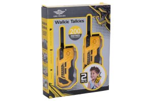 Vysielačky walkie-talkie set. Rozmery 16x6 cm. Obsahuje 2 vysielačky. 1 vysielačka - 3xAAA, nie je súčasťou (celkom 6xAAA), 1,5V. Dosah až 200m. ON/OFF prepínač na ľavej strane. Frekvencia 462MHz.