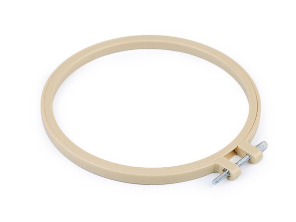 Vyšívací plastový kruh je pevný, opatrený kovovou sťahovacou skrutkou, pomocou ktorej prichytíte vyšívaciu tkaninu. Okrem vyšívania ho môžete použiť aj na aranžovanie alebo výrobu lapačov snov.