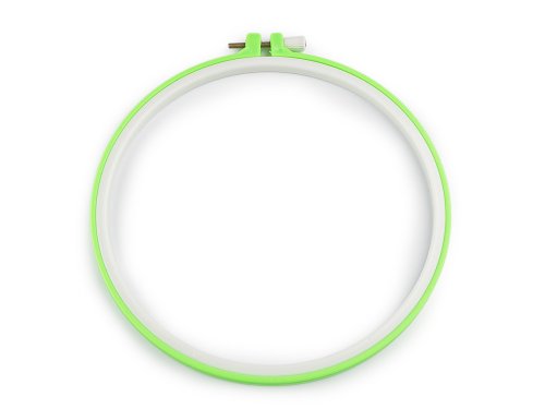 Vyšívací kruh je vyrobený z plastu. Je opatrený kovovou sťahovacou skrutkou, pomocou ktorej prichytíte vyšívaciu predlohu. [Kovová sťahovacia skrutka sa môže mierne líšiť.]