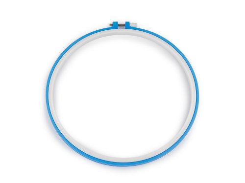 Plastový vyšívací kruh je opatrený kovovou sťahovacou skrutkou, pomocou ktorej sa uchytí vyšívacia tkanina.