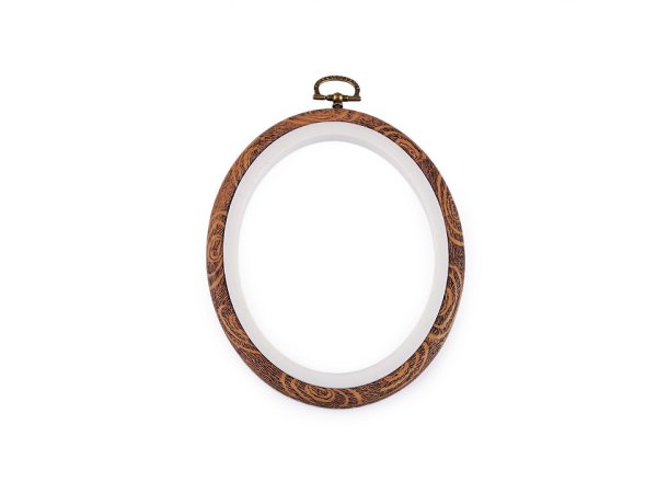 Na vyšívací ovál prichytíte látku, na ktorú budete vyšívať obrázok. Skladá sa z plastu a gumy, ktorá imituje drevo. Rámček je doplnený kovovou skrutkou, pomocou ktorej ho môžete zavesiť na stenu.