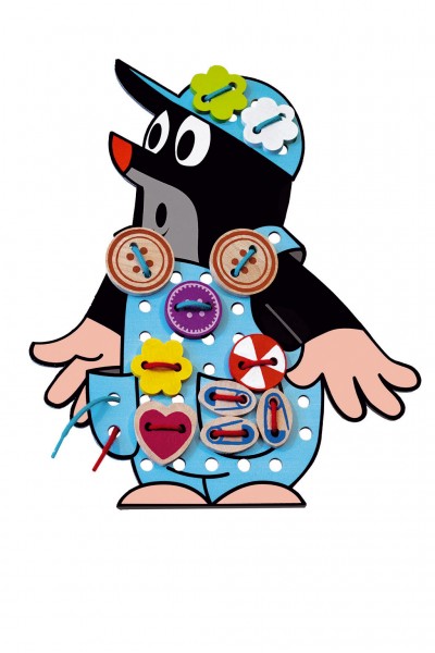 Jednoduchá prevliekacia postavička Krtka precvičí jemné prstíky najmenších. Prešívacia postavička je vyrobená z dreva a je doplnená o prevliekaciu šnúrku a gombíky. Pre deti od 3 rokov.