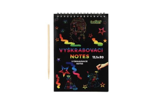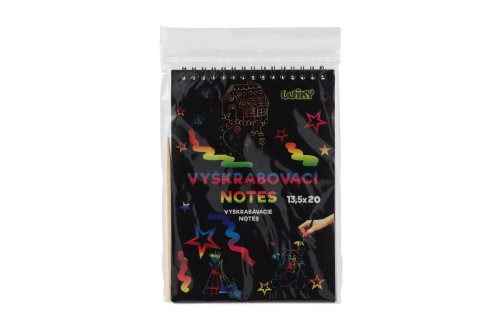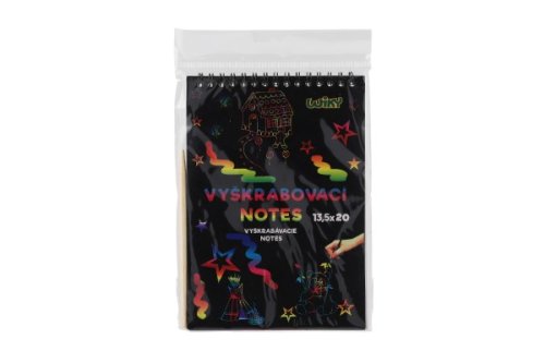 Kreatívne sa vyvádzajte na vyškrabávacom notese, ktorý má rozmery 13,5x20 cm. Na jednotlivých listoch, môžete pomocou vyškrabávacieho pera vytvárať rôzne pestrofarebné obrázky. Vhodné pre deti od 3 rokov.