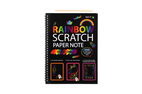 Kreatívne sa vyvádzajte na vyškrabávacom notese. Na jednotlivých listoch môžete pomocou vyškrabávacieho pera vytvárať rôzne pestrofarebné obrázky. Balenie obsahuje notes 10 listov + vyškrabávaciu tyčinku. Rozmer notesu: 19 x 26 cm Vhodné od 3 rokov