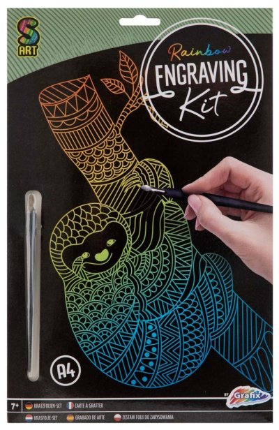 Vyškrabávací sada - 3 rôzne obrázky A4 - balenie obsahuje obrázok + Rydlo.