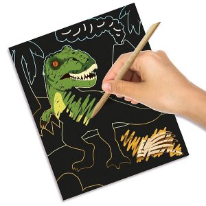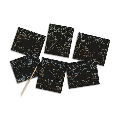 Škrabacie obrázky s veľmi špeciálnym efektom! Tieto škrabacie obrázky svietiace v tme odhaľujú jedného po druhom rôzne dinosaurami! S dreveným škrabacím perom môžu deti škrabať vzory, pierka a šupiny a objavovať všetky detaily, ktoré sa skrývajú pod čiernou škrabanou vrstvou. Deti si tak môžu vykúzliť rôzne dinosaurami. Zaveste ich do detskej izby, nech si môžu užívať plody svojej práce a žasnúť nad efektom žiary v tme. Balenie: 15x20x4cm. Vek: 3+