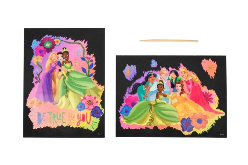 Vyškrabávacie obrázky Disney Princes – balenie obsahuje dva vyškrabávacie obrázky s rozmermi 26×19,5 cm + vyškrabávatko.