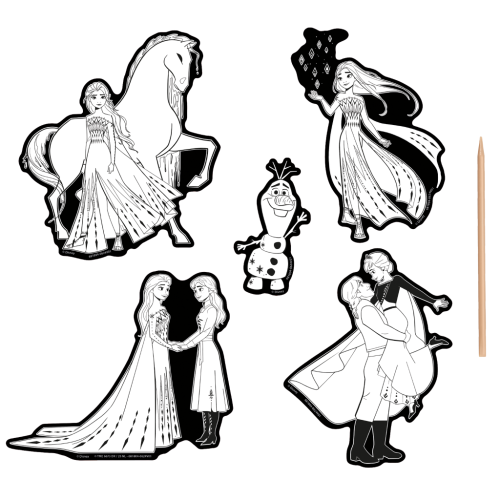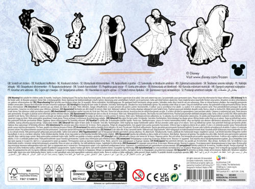 Vyškrabávacie obrázky-samolepky s motívom postavičiek z rozprávky Ľadové kráľovstvo. V balení 5 obrázkov a drevené vyškrabávacie pero. Rozmery balenia 21,5x21,5 cm. Odporúčaný vek 5+