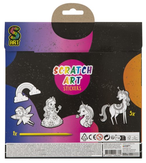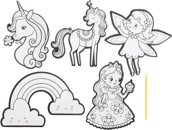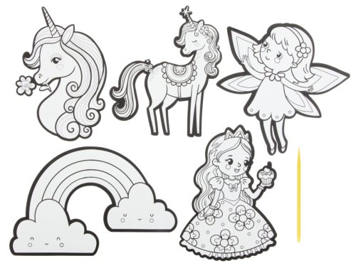 Vyškrabávacie samolepky XXL 5 ks – balenie obsahuje 5 vyškrabávacích samolepiek a škrabátka. Dva rôzne dizajny – zvieratká a princezné.