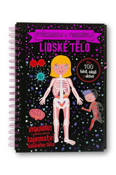 Vydaj sa na prieskum ľudského tela a objavuj kostru, svaly aj orgány. Táto nápaditá knižka je rozdelená do dvoch častí. V prvej časti je predstavená kostra a jednotlivé orgány, o ktorých sa dozvieš najrôznejšie fakty a zaujímavosti, doplnená stránkami s vyškrabávacími obrázkami s popiskami. Druhá časť je potom plná kvízov, doplňovania, bludísk, hľadania a spájania. Ani tu nechýbajú najrôznejšie fakty a zaujímavosti o ľudskom tele a jeho fungovaní. Tak na nič už nečakaj a vydaj sa za týmto vyškrabávacím dobrodružstvom.