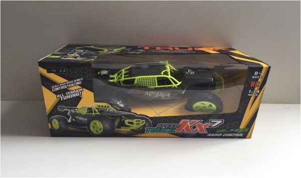 Skvele ovládateľná RC Bugina do terénu. Výkonný motor dosahuje rýchlosť až 20km / h. Absorbčná tlmiče na oboch nápravách, realistický vzhľad.
