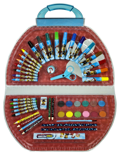 Kresliarska súprava pre deti v plastovom kufríku s motívom Tlapkovej patroly. Sada obsahuje: 6 pasteliek, 12 fixiek, 12 voskoviek, 12 vodoviek so štetčekom, gumu, 2 ceruzky, strúhadlo, pravítko, nožnice. Vhodné pre deti od 3 rokov.