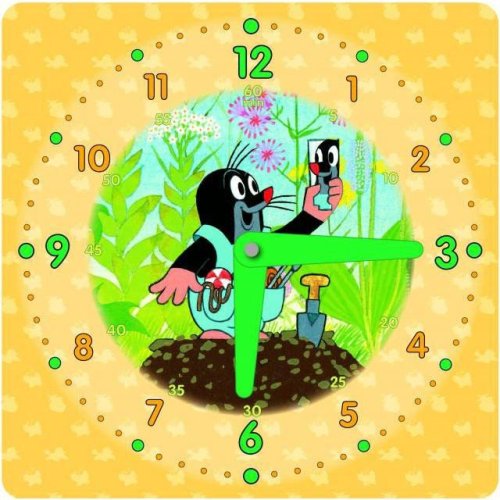 icenčné motívy, prehľadný ciferník s 12-timi, 24 hodinovým časom, minútami, ročnými obdobiami- NOVÉ farebné ručičky (väčšia atraktívnosť pre deti), zaguľatené rohy (z dôvodu bezpečnosti), - NÝTY: výrobok vybavený strojovo nitmi z dôvodu bezpečnosti, ručne nemožno rozpojiť - veľkosť 21 x 2 povrchovou úpravou proti oderu