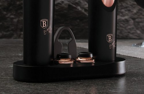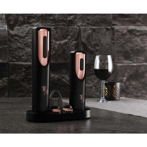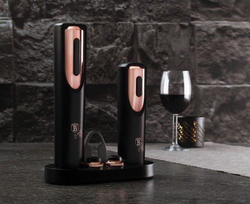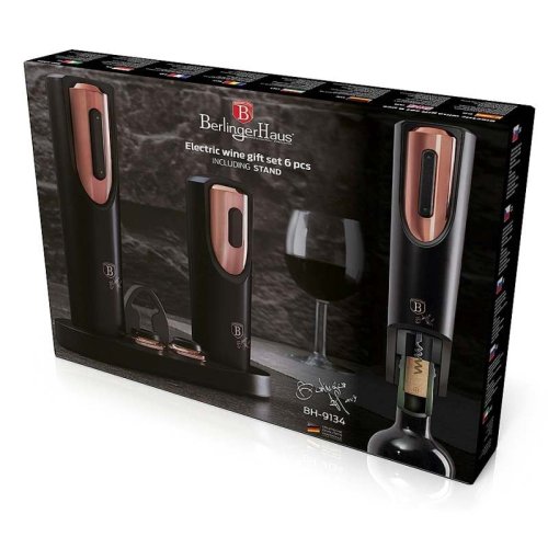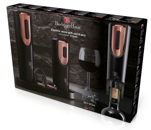Moderná elektrická vývrtka na víno, s ktorou otvoríte fľašu za 8 sekúnd a to jednoduchým stlačením tlačidla. Kompletná súprava s dvoma zátkami, vákuovou pumpičkou, prehľadne uložená v stojane, je elegantným darčekom či nutnou výbavou každého milovníka vína.