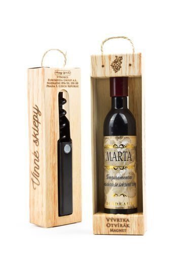 Vývrtka v tvare vínnej fľaše s originálnou potlačou vinety je vhodným darčekom pre všetkých milovníkov vína. Užite si svoju chvíľku v dobrej spoločnosti! Vývrtka s magnetom na uchytenie na chladničku je balená v darčekovej krabičke. Rozmer 12,5 x 3,5 x 2,5 cm.