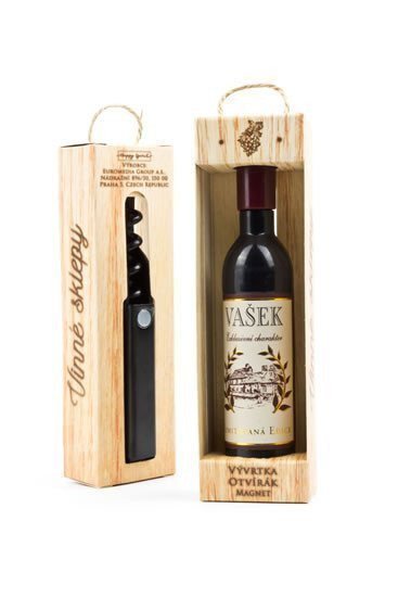 Vývrtka v tvare vínnej fľaše s originálnou potlačou vinety je vhodným darčekom pre všetkých milovníkov vína. Užite si svoju chvíľku v dobrej spoločnosti! Vývrtka s magnetom na uchytenie na chladničku je balená v darčekovej krabičke. Rozmer 12,5 x 3,5 x 2,5 cm.