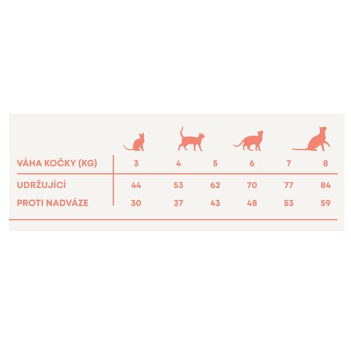 Kŕmny návod: zmenu krmiva je potrebné vykonávať postupne po dobu 7 dní. Ako návod použite tabuľku s dávkovaním. Denné množstvo potravy sa môže pre každú mačku líšiť, záleží na úrovni jej aktivity, plemene a podmienkach prostredia. Dennú kŕmnu dávku podávajte rozdelenú na 2 porcie denne, nepoužívajte zvyšky krmiva z predchádzajúceho dňa. Mačka musí mať vždy prístup k čistej, čerstvej vode. Skladovanie: skladujte na chladnom a suchom mieste. Obal by mal byť po použití vždy bezpečne uzavretý.