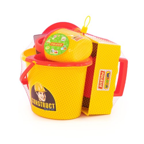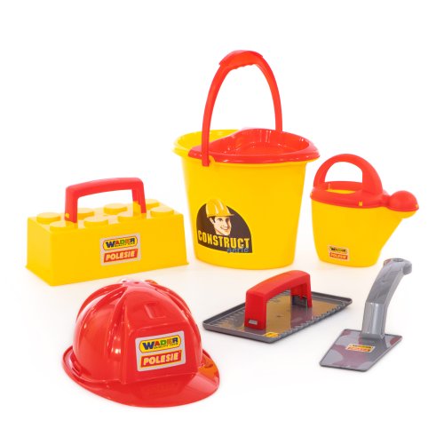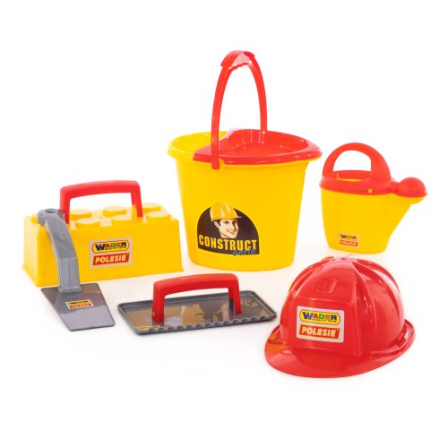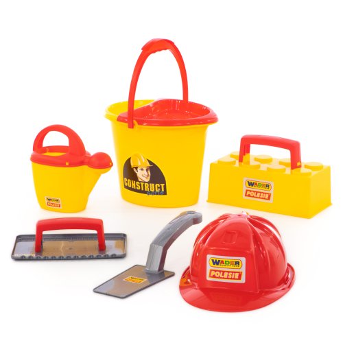 Wader Murárska sada ConsTruct. Obsahuje kýblik, kanvičku, murársku lyžicu, helmu, formu na tehly, hladítko