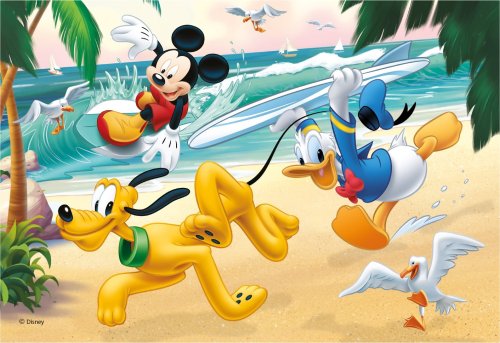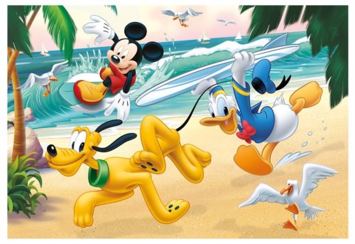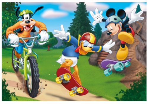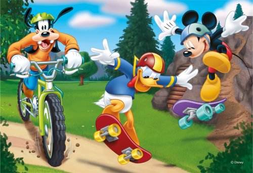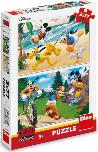 Detské puzzle s 2 obrázkami po 77 dielikoch s motívmi Mickeyho pri športe.