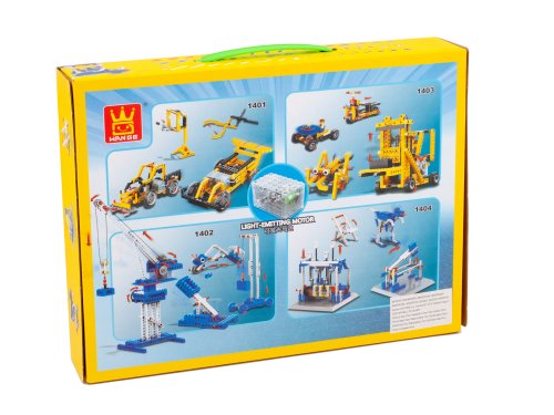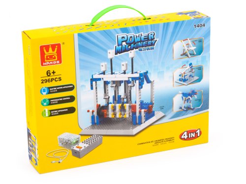 Balenie obsahuje: 296 dielikov stavebnice Wange, box na 2 x AA batérie (nie sú súčasťou balenia), kábel, elektrický motúrik so svetelnou diódou. Na vloženie batérie do nabíjacieho ovládača je potrebný malý skrutkovač.