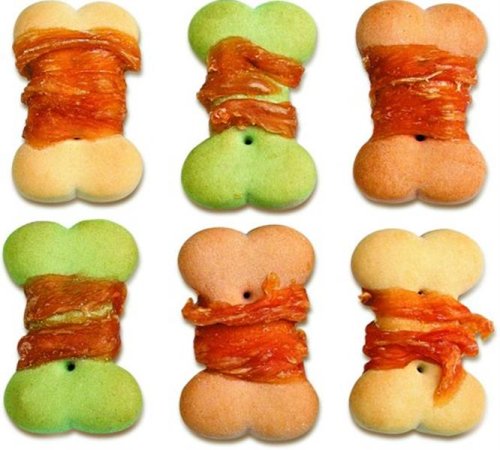 Zloženie: kuracie mäso, rastlinný proteín, škrob, uhličitan vápenatý, glycerín, pšeničná múka, sorbitol, soľ, farbivá povolené EÚ. Analytické zložky: hrubý proteín 31%, hrubý tuk 1,5%, hrubá vláknina 0,5%, hrubý popol 10%, vlhkosť 15%. Kŕmny návod: Podávajte ako maškrtu medzi jedlami alebo ako odmenu pri výcviku. Zvieraťu zaistite stály prístup k čistej pitnej vode. Upozornenie: Pohlcovač vlhkosti v priloženom sáčku nie je určený na konzumáciu.