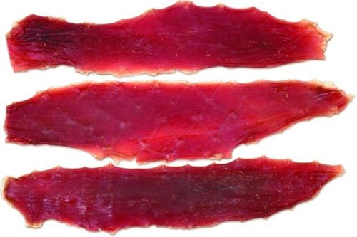 Zloženie: kačacie mäso, rastlinný proteín, glycerín, soľ. Analytické zložky: hrubý proteín 58%, hrubý tuk 2%, hrubá vláknina 0,5%, hrubý popol 6%, vlhkosť 18%. Kŕmny návod: Podávajte ako maškrtu medzi jedlami alebo ako odmenu pri výcviku. Zvieraťu zaistite stály prístup k čistej pitnej vode. Upozornenie: Pohlcovač vlhkosti v priloženom sáčku nie je určený na konzumáciu.